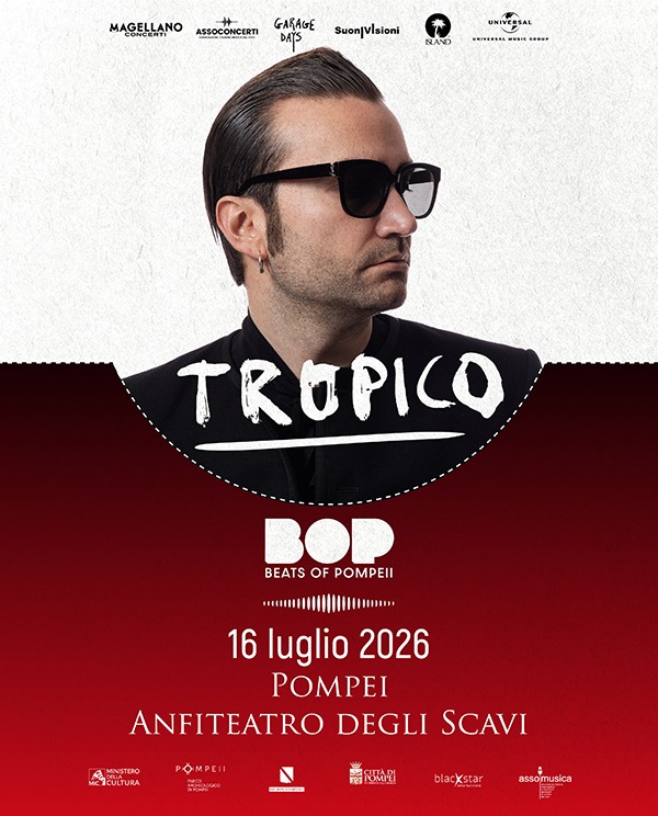 Tropico in concerto il 16 luglio all'Anfiteatro degli Scavi nell'ambito della rassegna BOP - Beats Of Pompeii. Biglietti disponibili su: Ticketmaster Ticketone