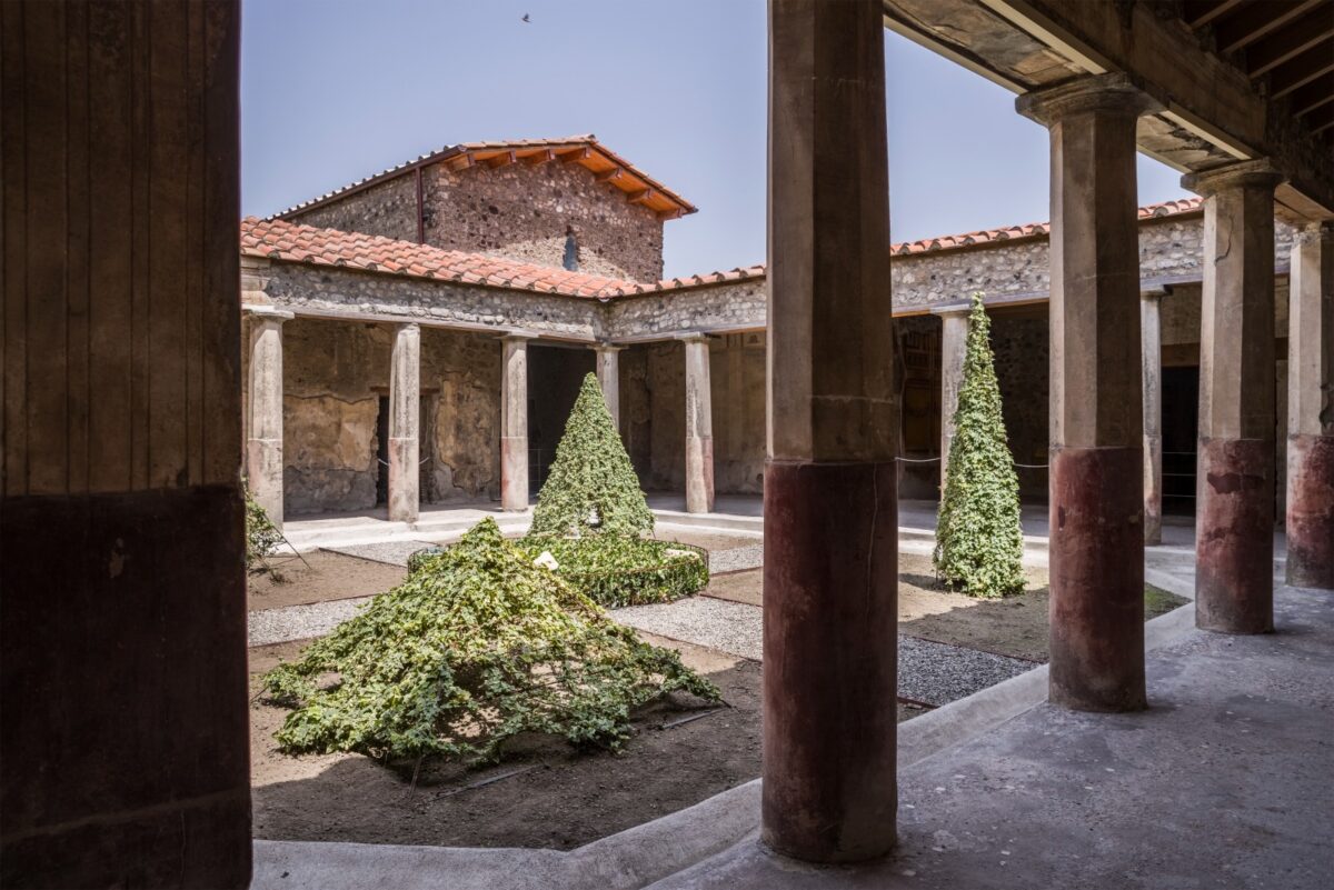 La riproposizione, quando possibile, di piccoli arredi o infrastrutture come le incannucciate e i covoni di Hedera helix su strutture di ferro, primi esempi di Ars topiaria ricavati dall’iconografi a pompeiana, si accompagnano alla riproduzione delle ollae pertusae, evidenziando il loro utilizzo pratico e che cosa questi vasi ci dicono sul design del giardino romano. Rari sono i casi di una riproduzione in serie e di riutilizzazione di un “reperto archeologico” a fini produttivi.